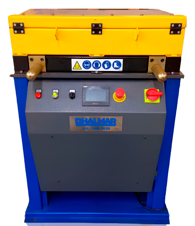 Máquina semiautomática para dobrar aços CA25/50/60, material pré-cortado.