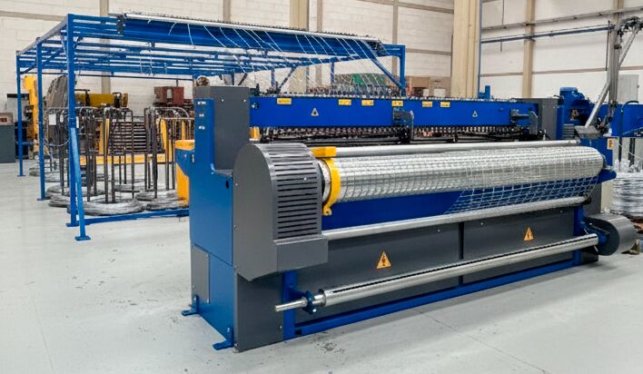 Máquina automática para produção de telas, grades ou malhas em arame.